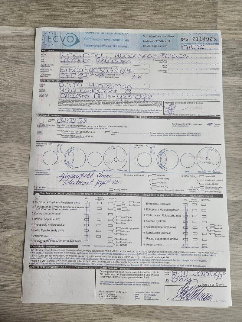 Op 8 Augustus zijn Lewy en Zaffyra gecontroleerd op de ogen en beide zijn geschikt bevonden.